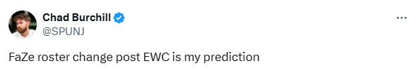 “FaZe将在EWC 2025后调整阵容。这是我的预测。”