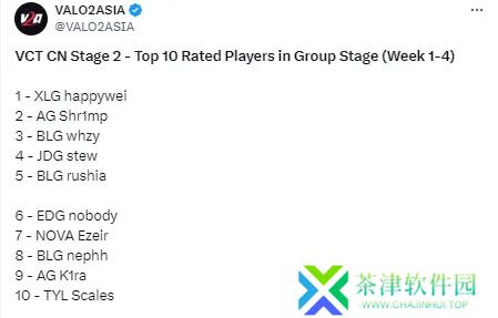 外媒统计2025 VCT CN第二赛段常规赛阶段(第一周-第四周)Rating前十选手:
