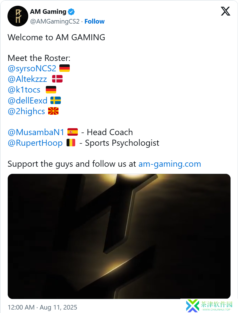 德国选手与绩效经纪公司Achieveminds为旗下自由选手组建了一支名为“AM”的战队。这些选手此前在CS转会市场上因“年龄过大”“风险过高”或“风格不符”等原因未能找到下家。