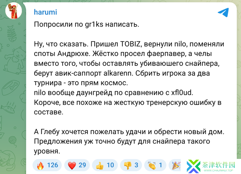 “我能说什么呢。TOBIZ(HEROIC的教练)来了之后,把nilo召了回来,还调整了tN1R的位置。队伍的火力大幅下降,而且这帮人放着能打能杀的狙击手不用,反而招了个辅助型的Alkaren。打了两个赛事就把一个选手弃用,这操作简直离谱。跟xfl0ud比起来,nilo的水平明显下降了。总之,这一切看起来都是教练组在阵容组建上犯的严重错误。希望gr1ks能找到新的归宿。像他这种水平的狙击手,肯定会有队伍要的。”