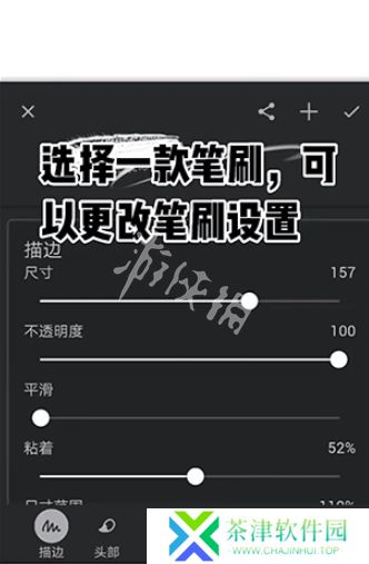 7、描边时,用户可以选择笔刷去更改笔刷的设置。