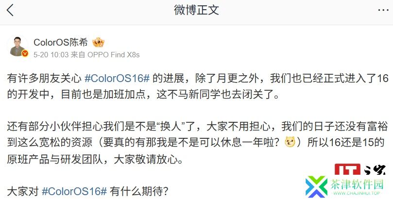 OPPO 陈希:ColorOS 16 系统准备中,有消息会在社区招募