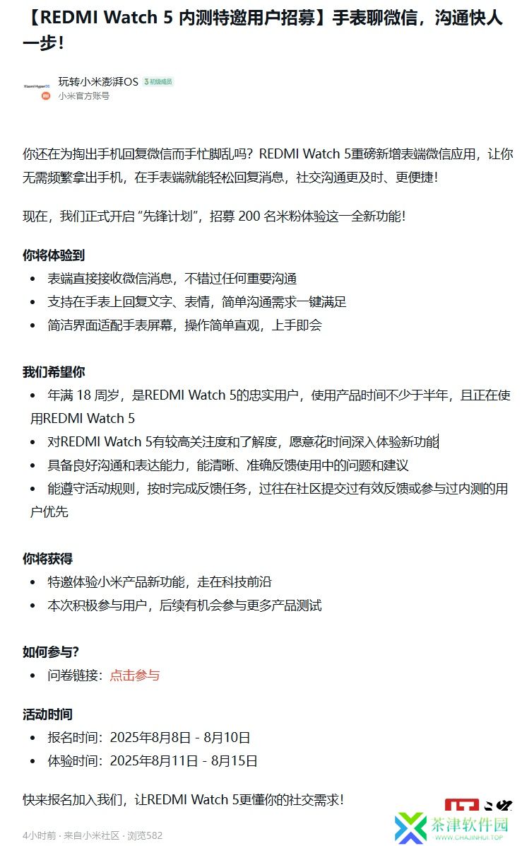 快来报名加入我们,让 REDMI Watch 5 更懂你的社交需求!
