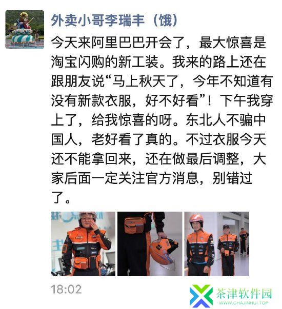 从该骑手发布的照片可以看出,淘宝闪购骑手的新工装以橙色、黑色为主色调,外形酷似赛车服,兼具动感和功能性。