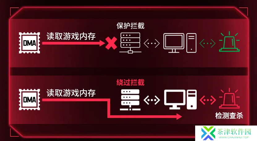 针对日益猖獗的 DMA 硬件**,腾讯游戏安全团队与《无畏契约》安全运营团队 8 月 8 日宣布,结合 CPU 虚拟化功能,打造了针对 DMA 类硬件**的重磅拦截、查杀方案,将它称为 DMA 猎杀(DMA-Hunter)方案。